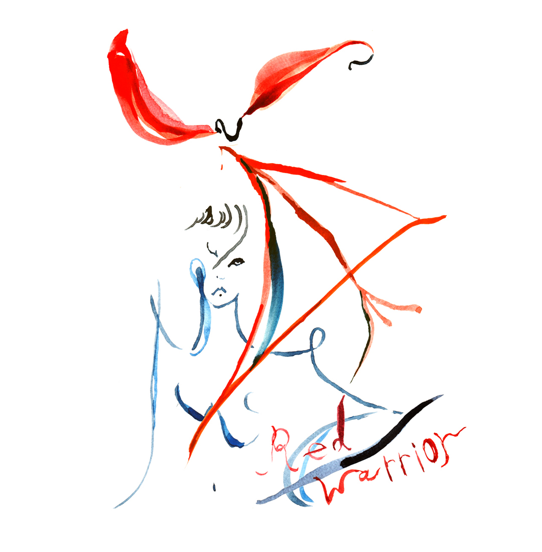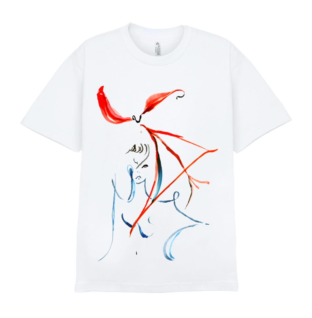 강하고 자유로운 몸과 붉고 푸른 화살을 가진 레드 워리어 티셔츠입니다.