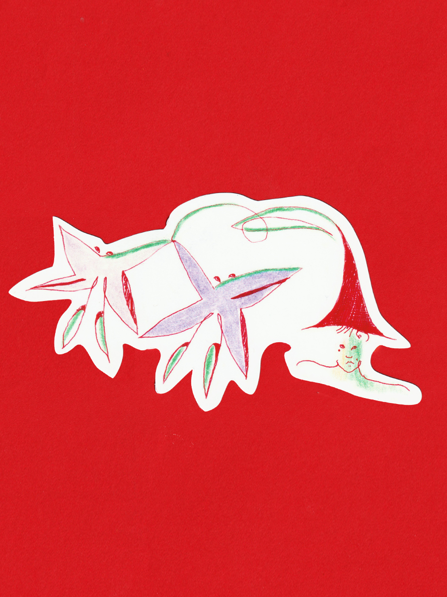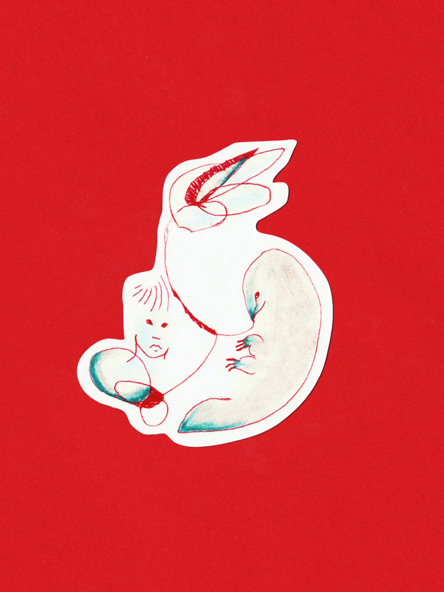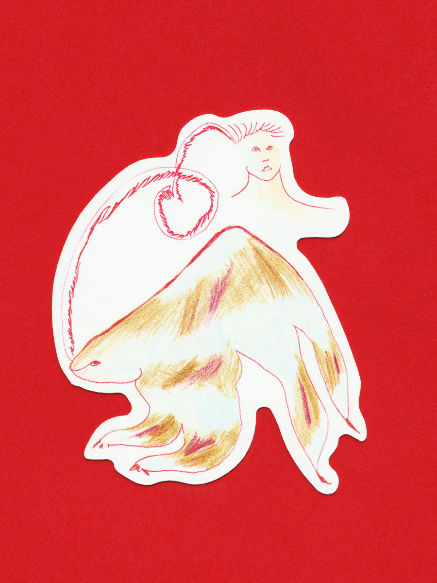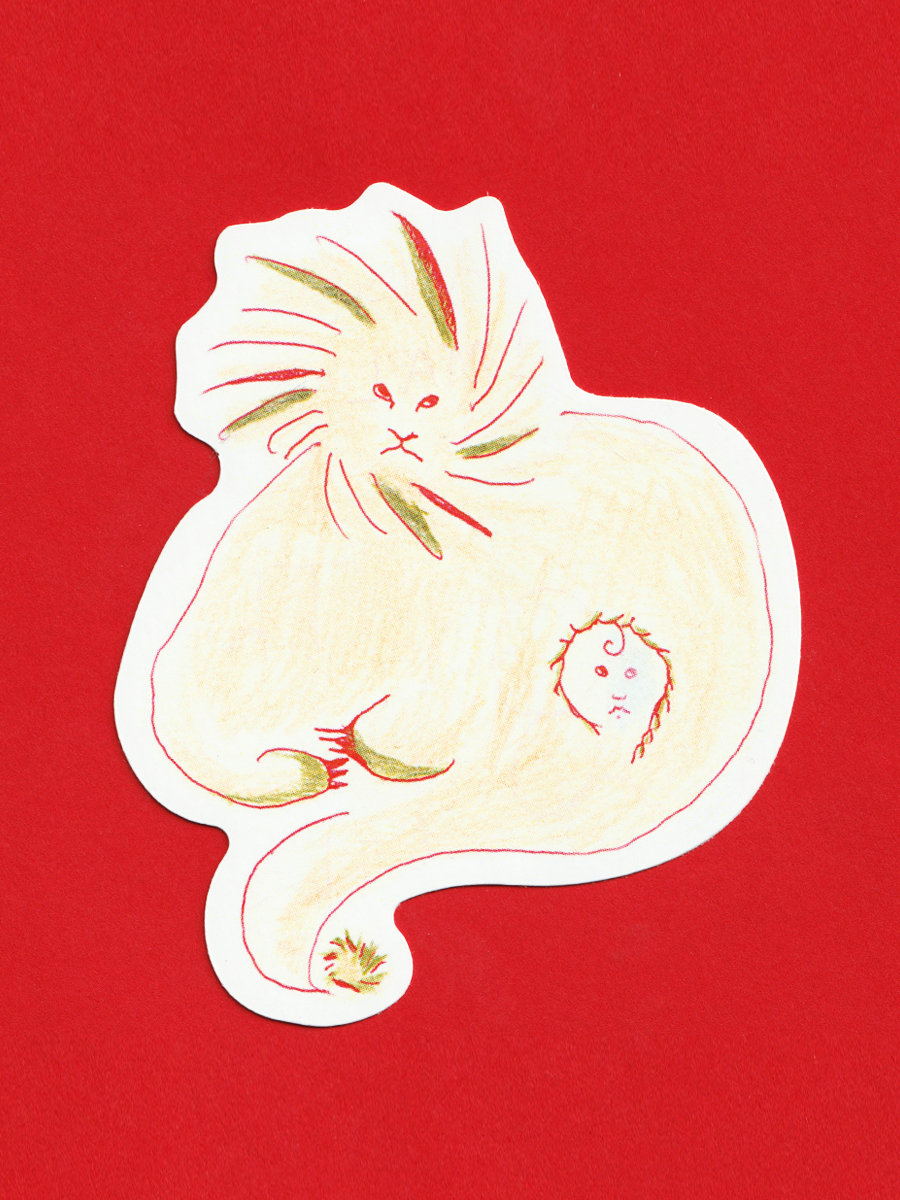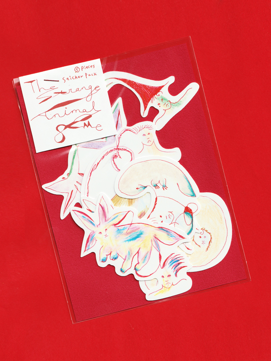 정체를 알 수 없는 이상한 동물들과 이어져 있는 '나'를 그린 다섯 조각의 스티커입니다. 우리들은 영원히 이어져 있을 거예요!
