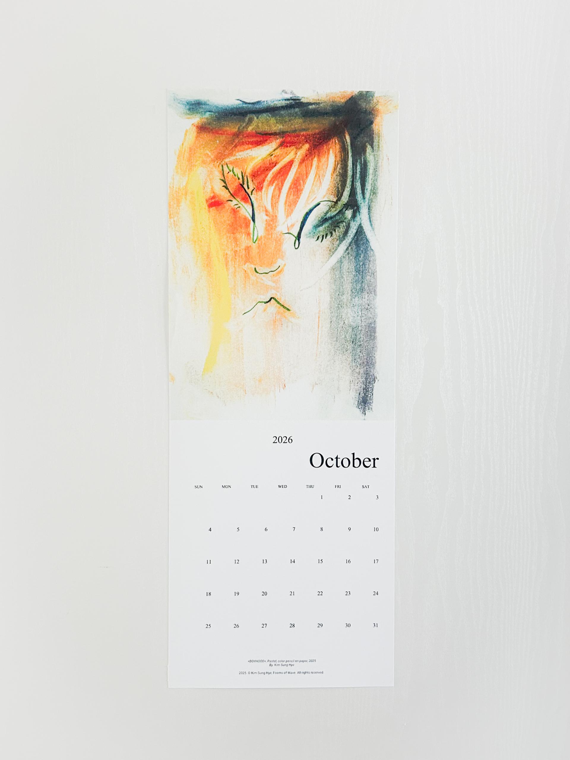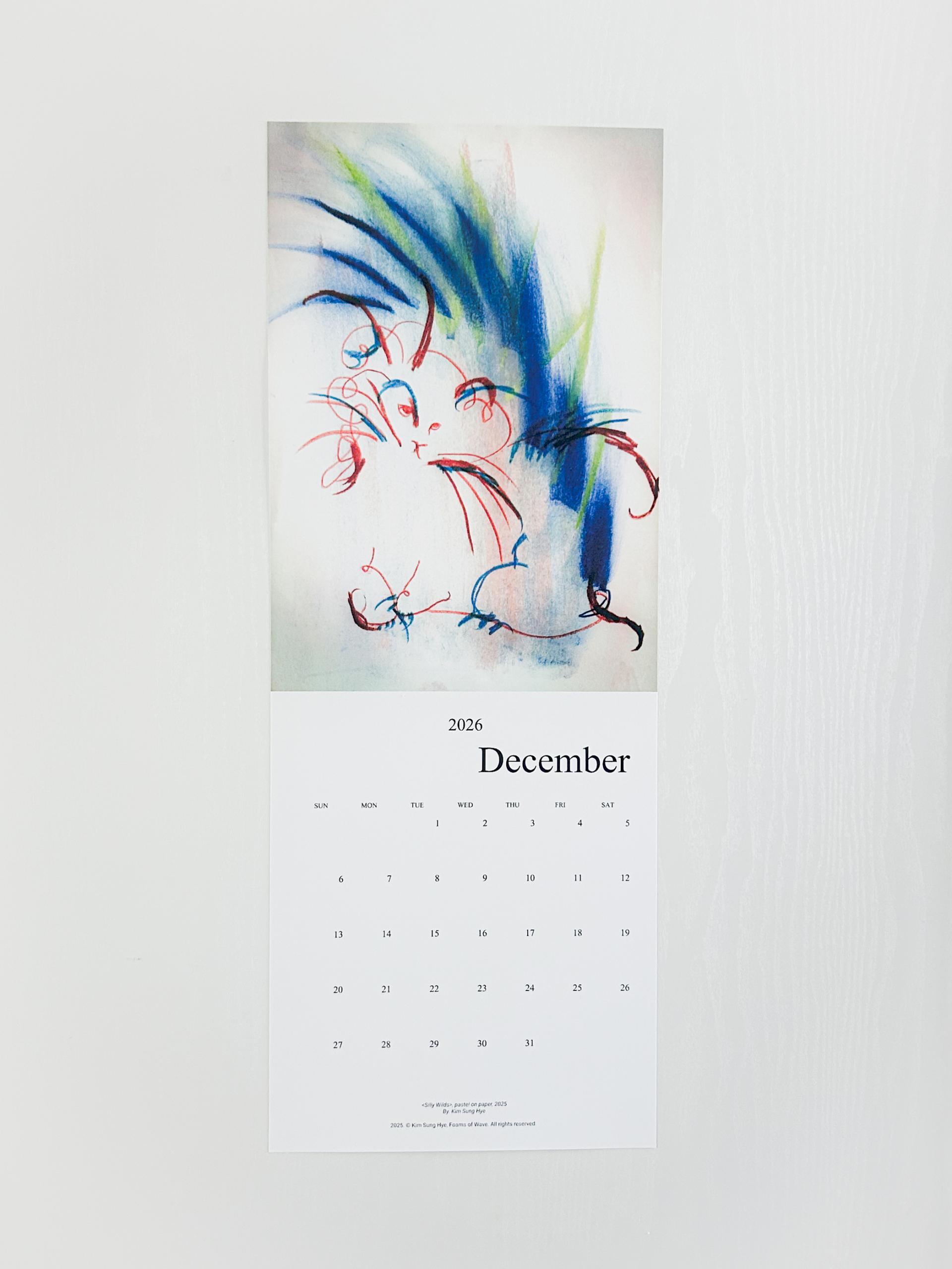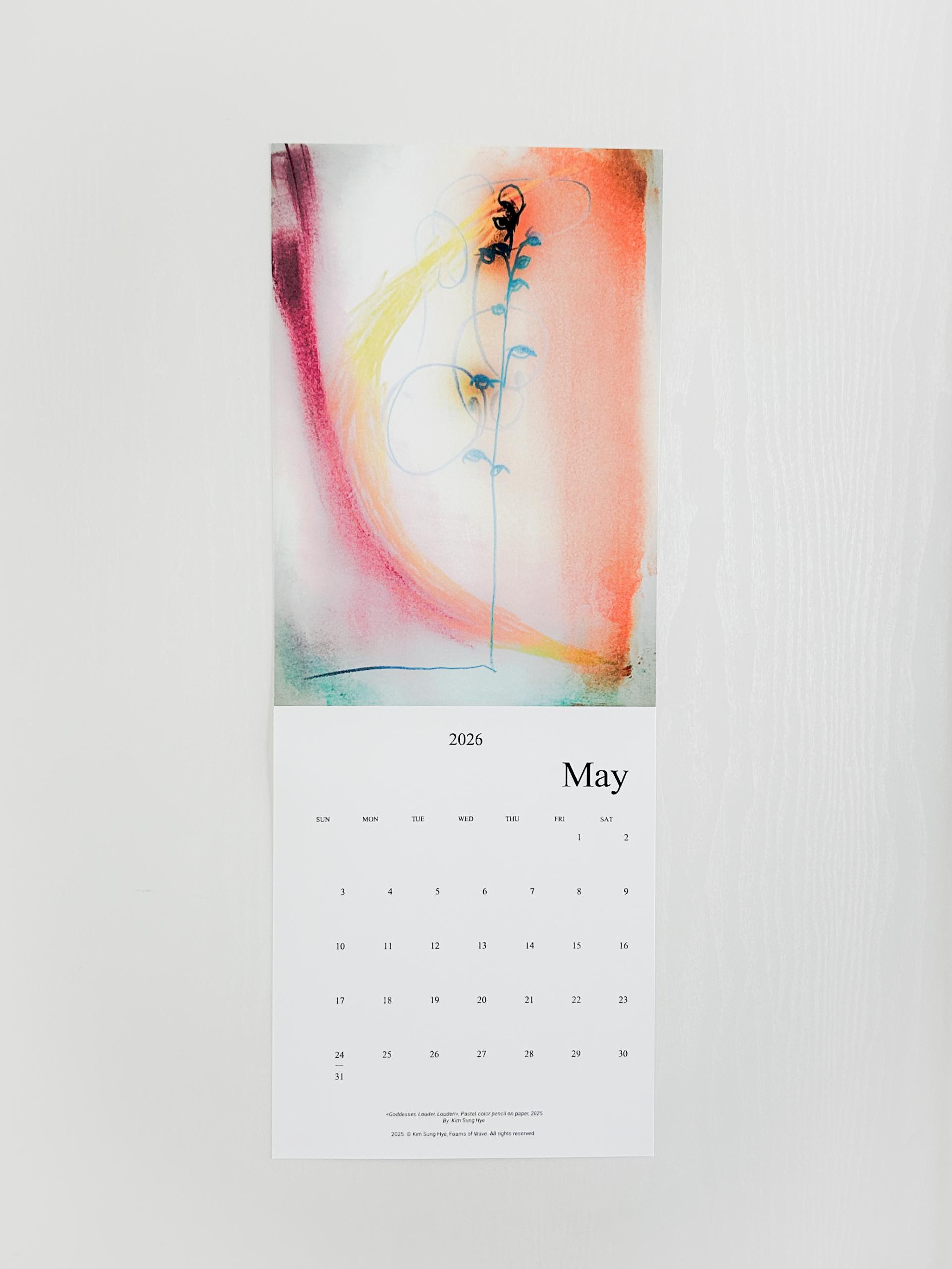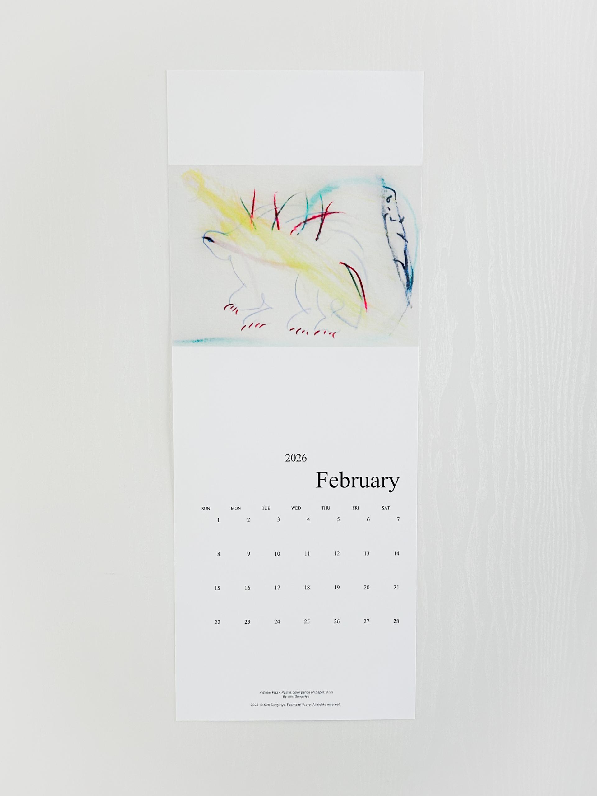 파도의 거품들의 김성혜 작가의 드로잉이 수록된 2026 캘린더입니다. 2025년 한 해 동안 그려진 드로잉으로 구성되어 있습니다. 달 마다 바뀌는 그림을 공간에 걸어두고 바라보며 계절과 시간을 느끼고, 때로는 그림이 건네는 언어로 위안과 힘을 얻으시기를 바랍니다.