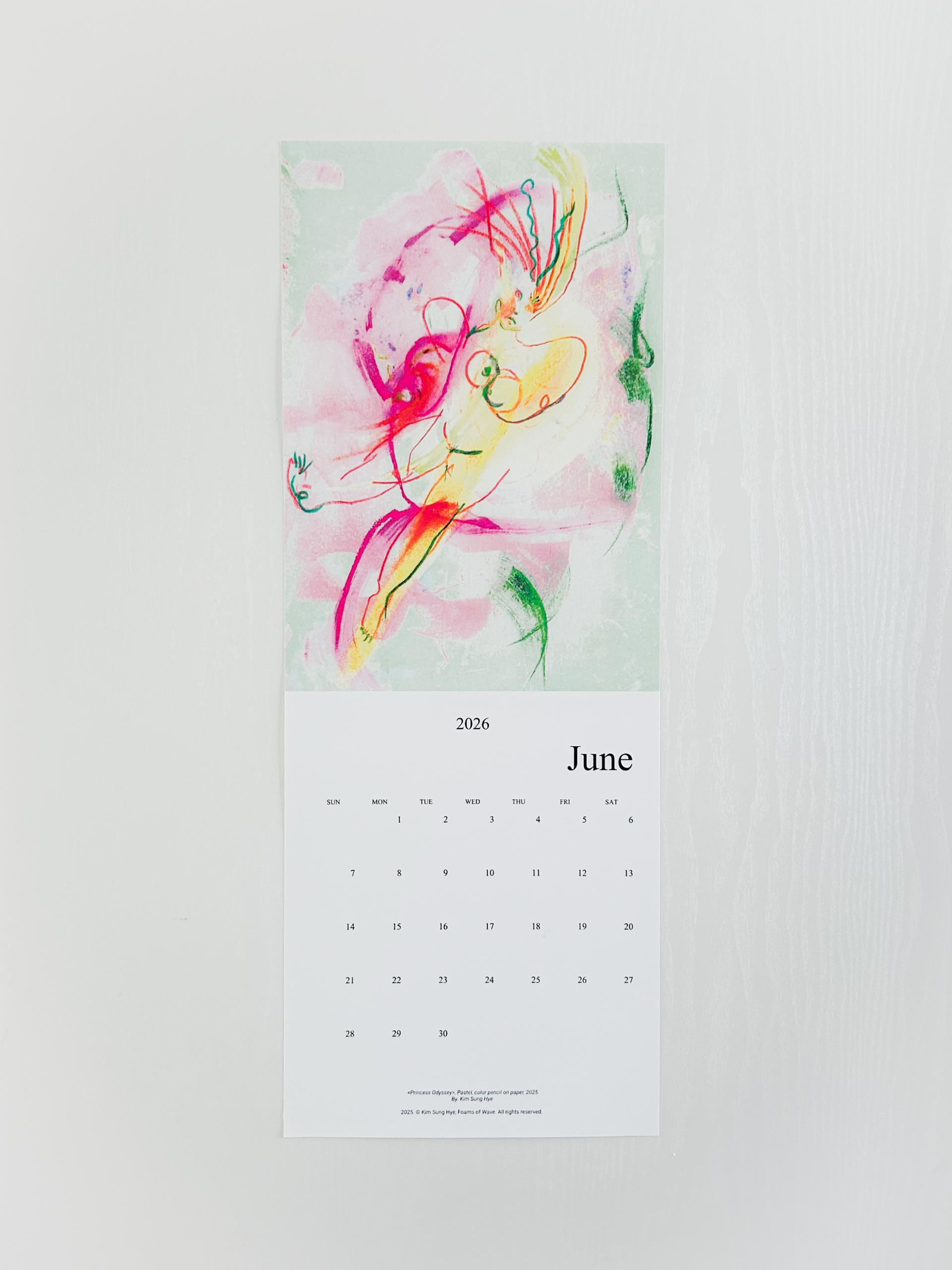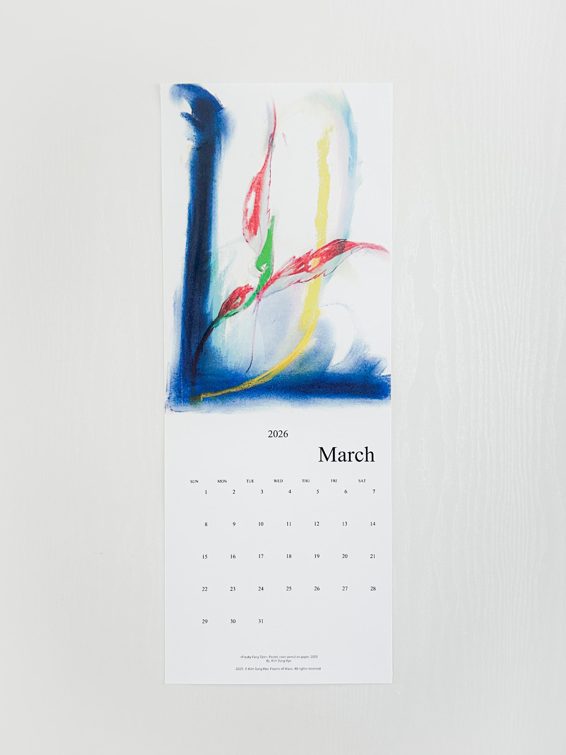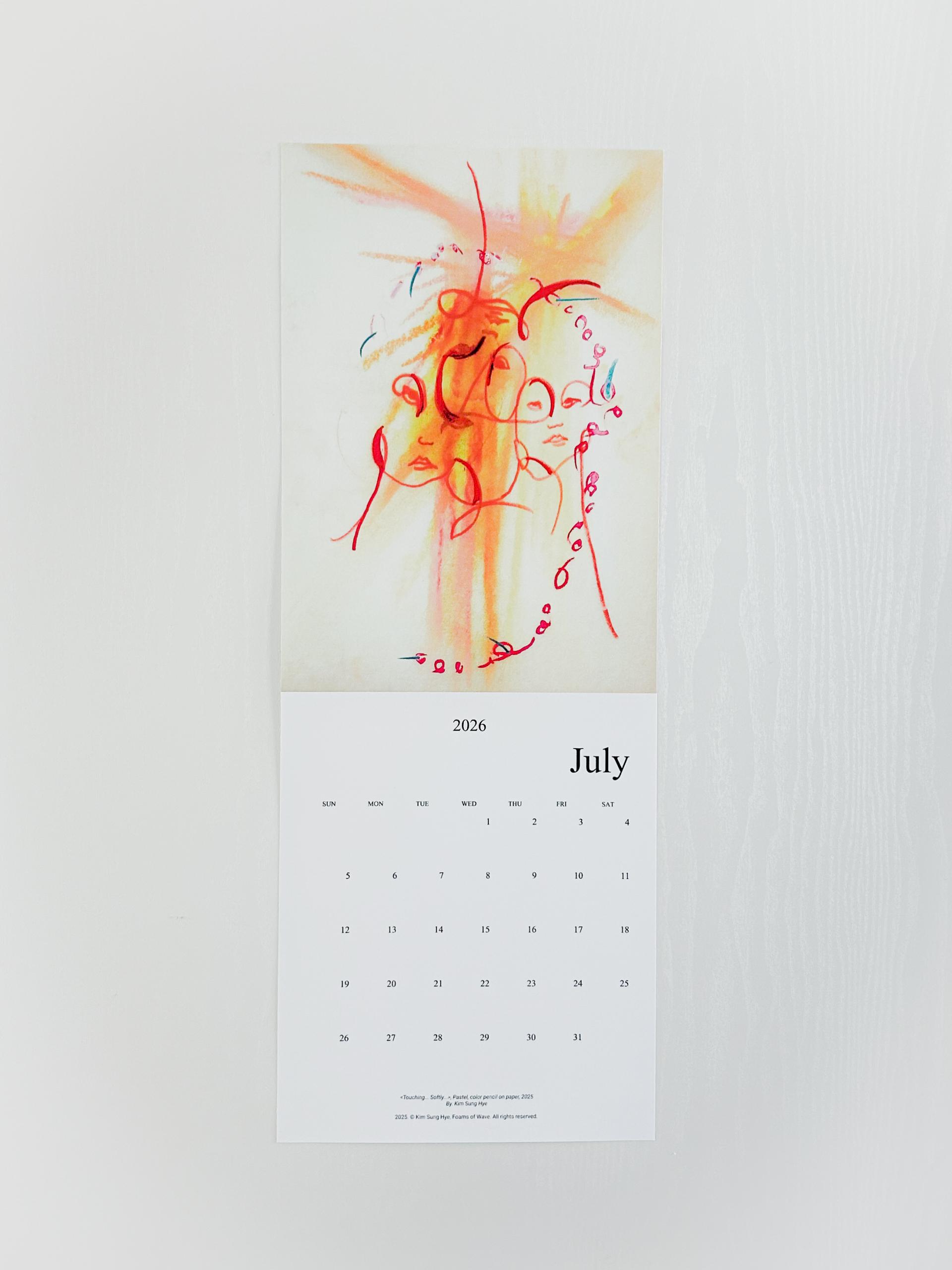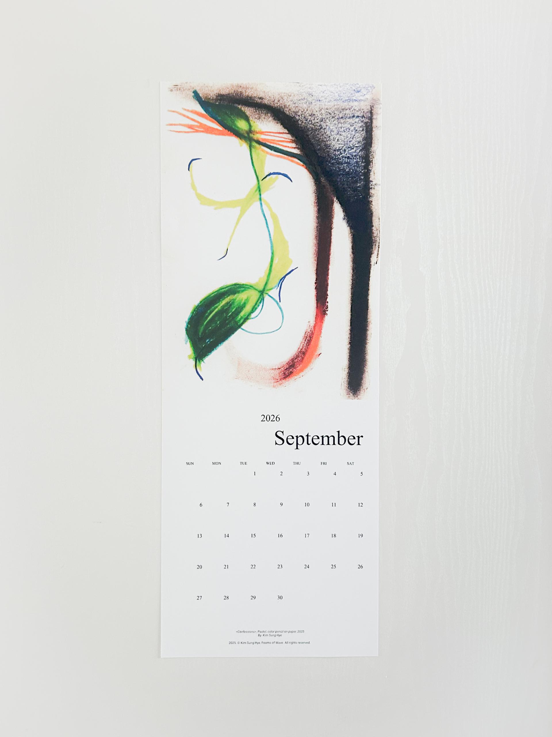 파도의 거품들의 김성혜 작가의 드로잉이 수록된 2026 캘린더입니다. 2025년 한 해 동안 그려진 드로잉으로 구성되어 있습니다. 달 마다 바뀌는 그림을 공간에 걸어두고 바라보며 계절과 시간을 느끼고, 때로는 그림이 건네는 언어로 위안과 힘을 얻으시기를 바랍니다.