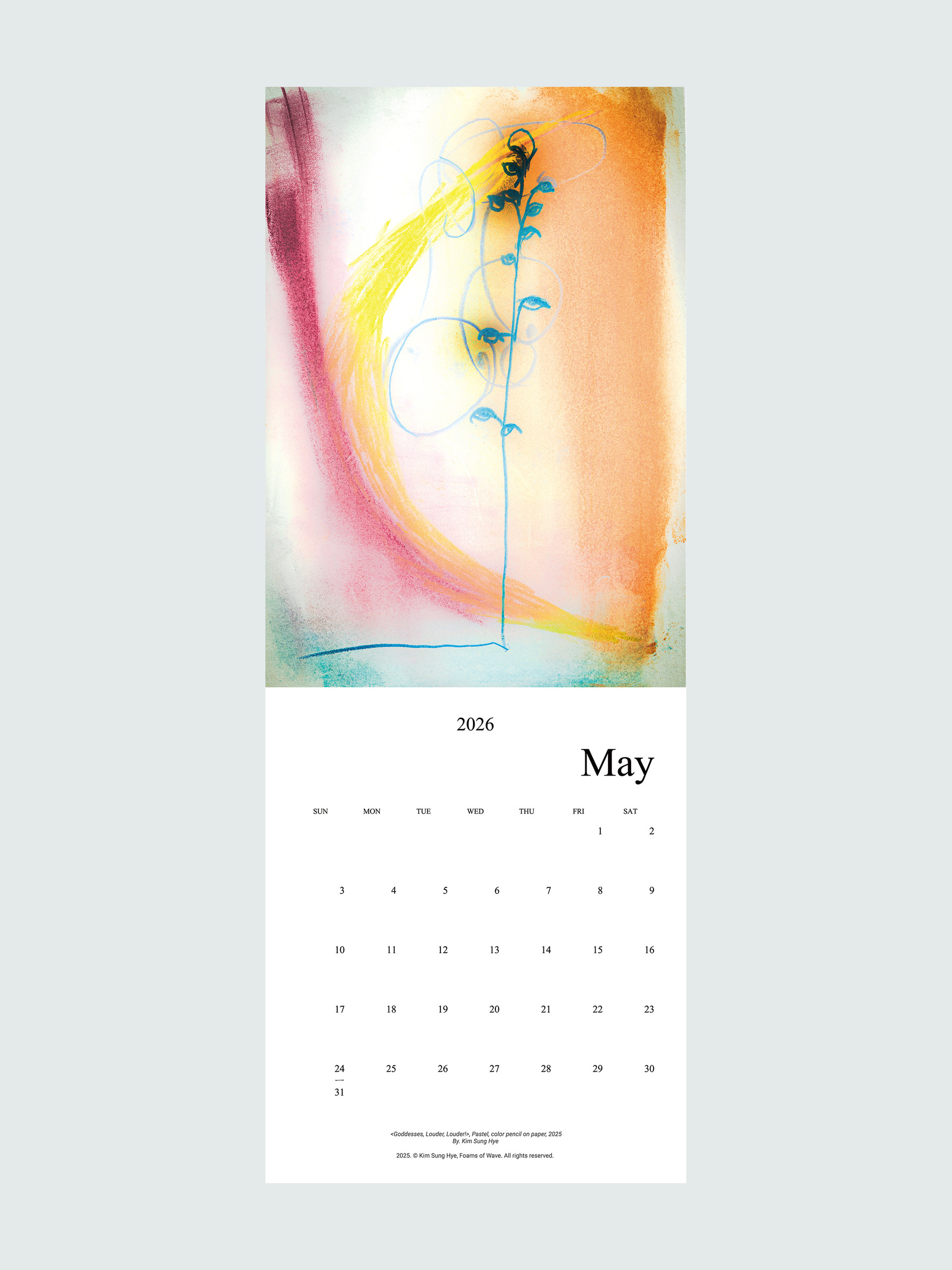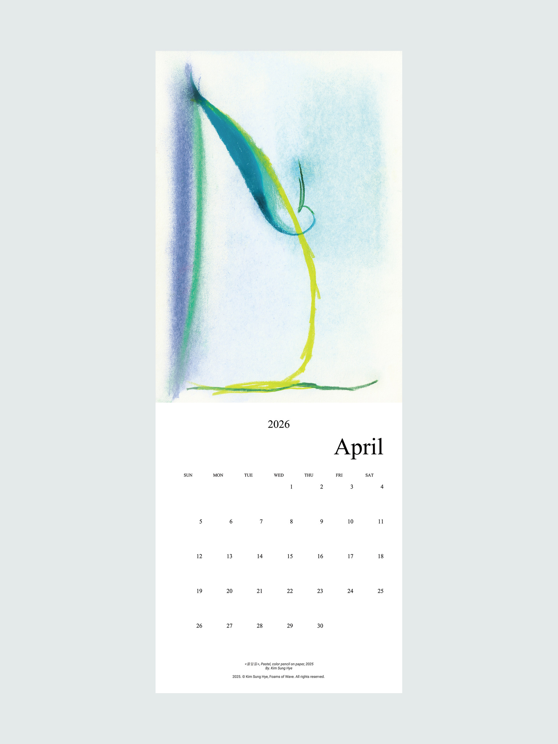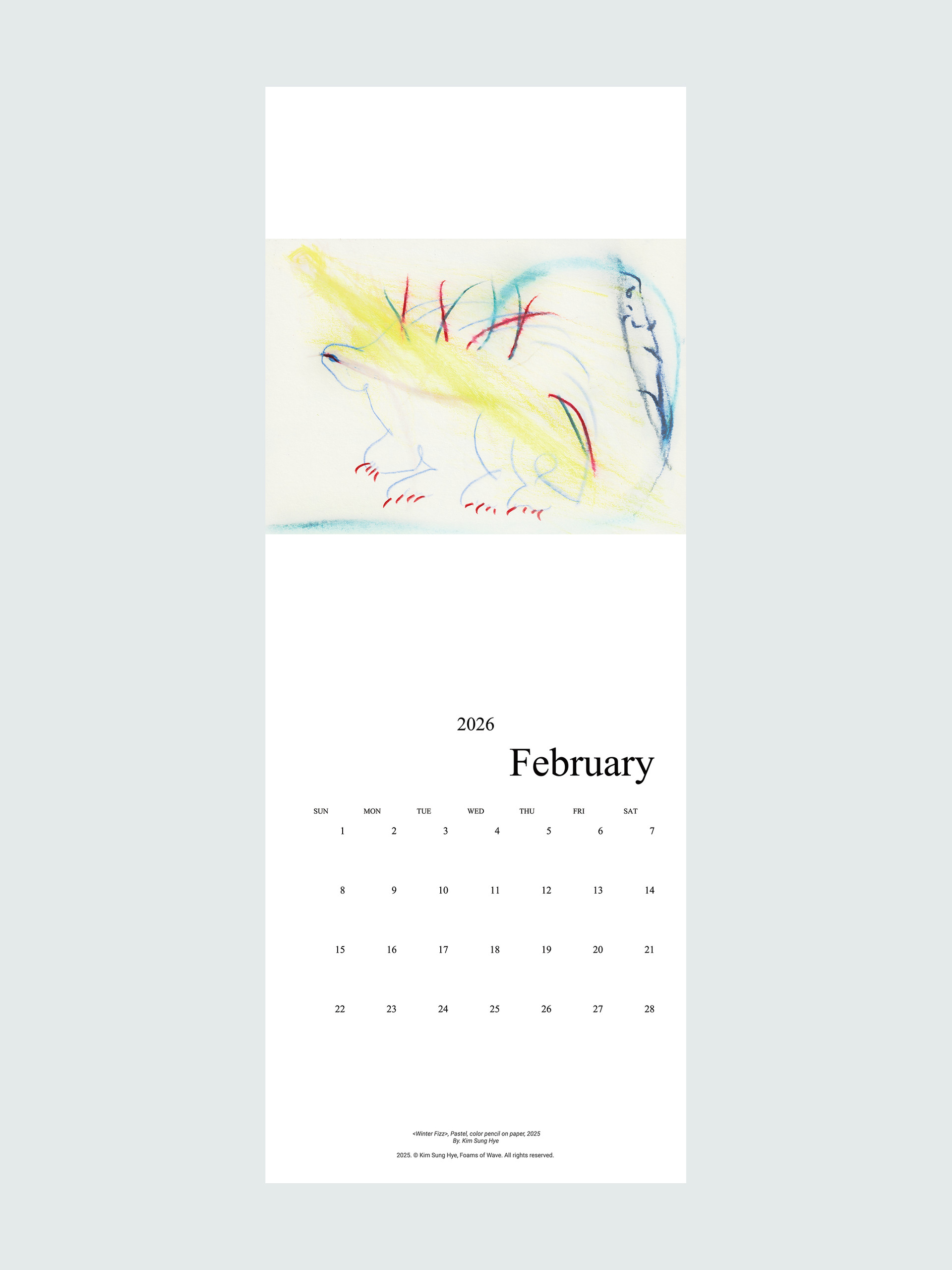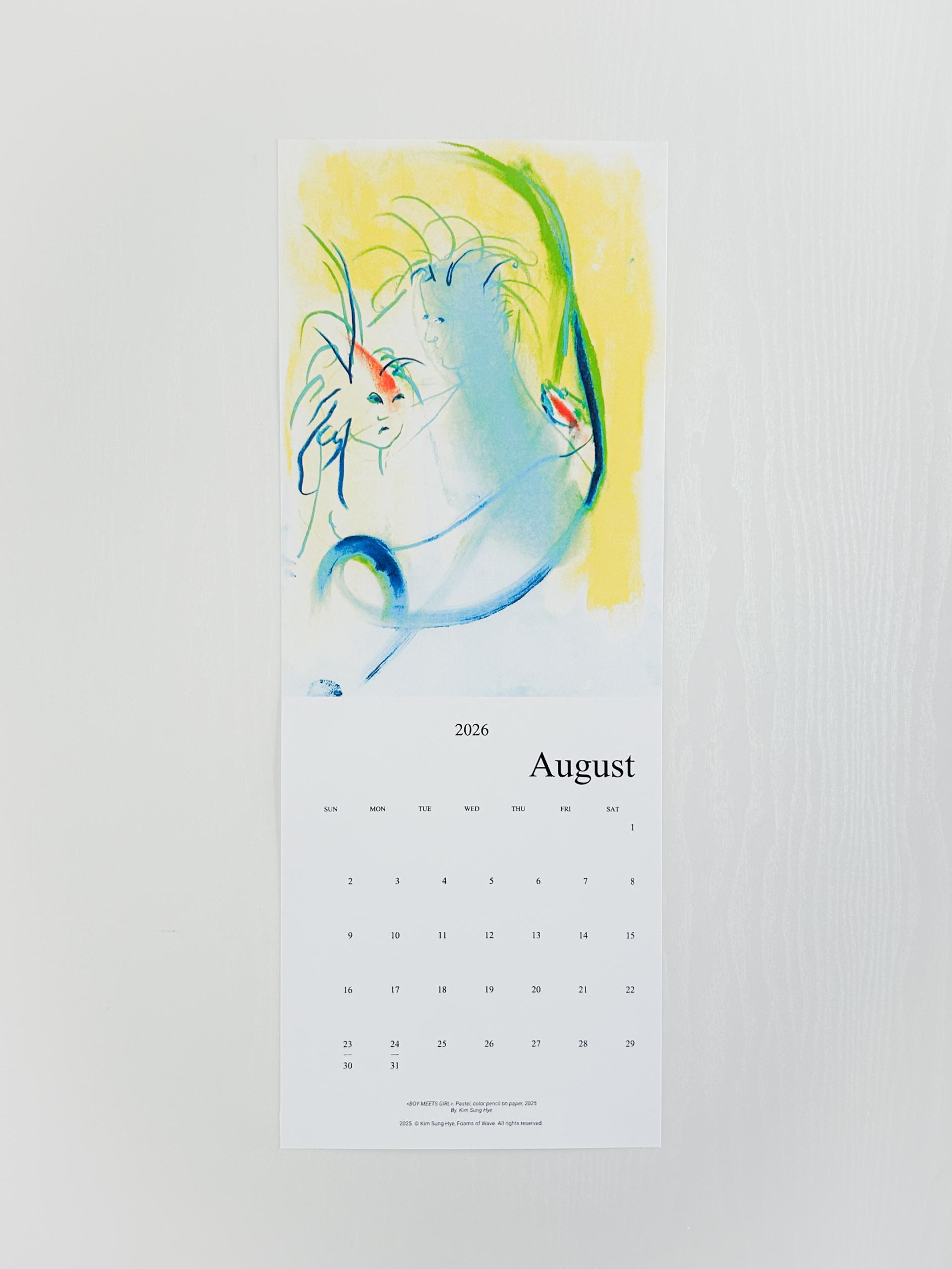 파도의 거품들의 김성혜 작가의 드로잉이 수록된 2026 캘린더입니다. 2025년 한 해 동안 그려진 드로잉으로 구성되어 있습니다. 달 마다 바뀌는 그림을 공간에 걸어두고 바라보며 계절과 시간을 느끼고, 때로는 그림이 건네는 언어로 위안과 힘을 얻으시기를 바랍니다.