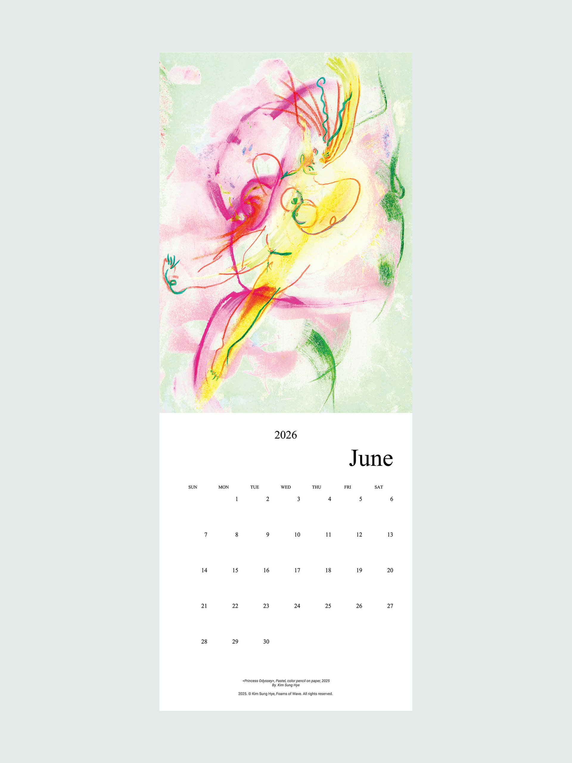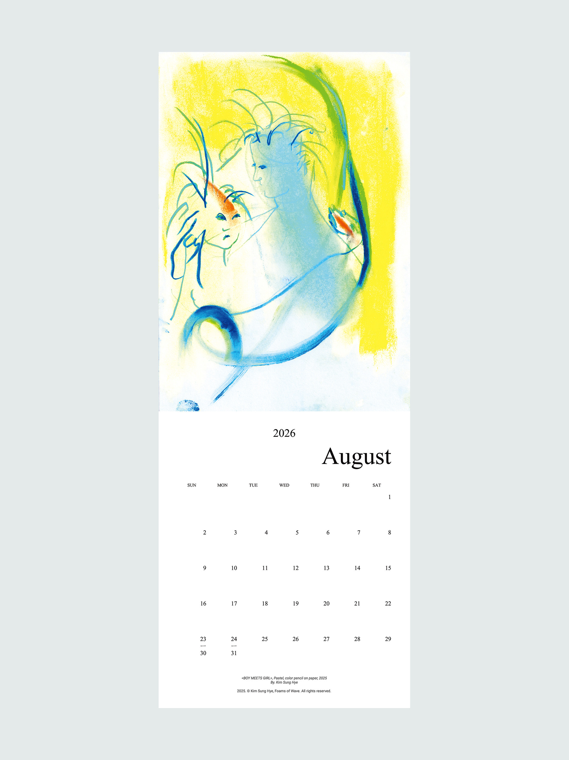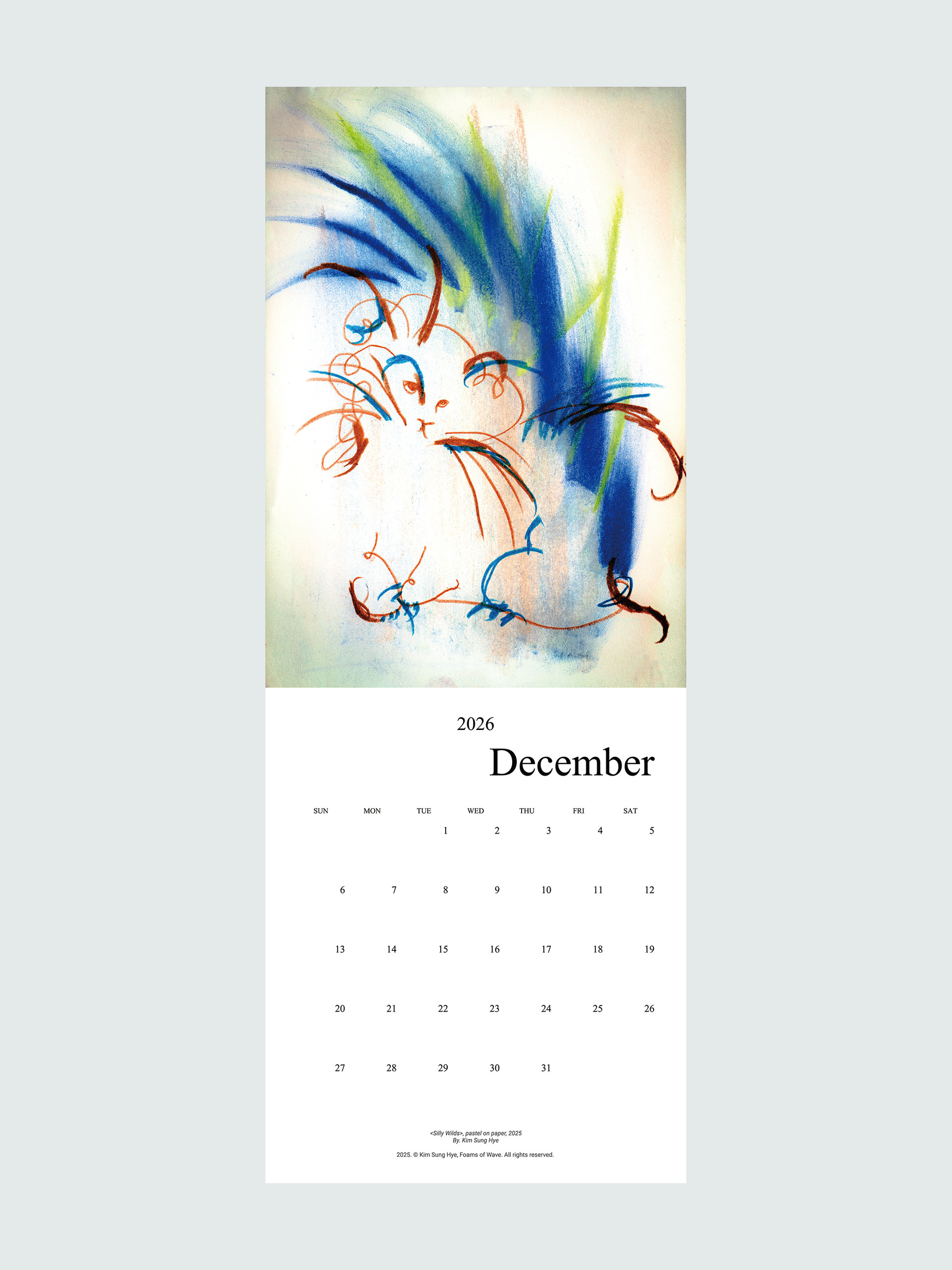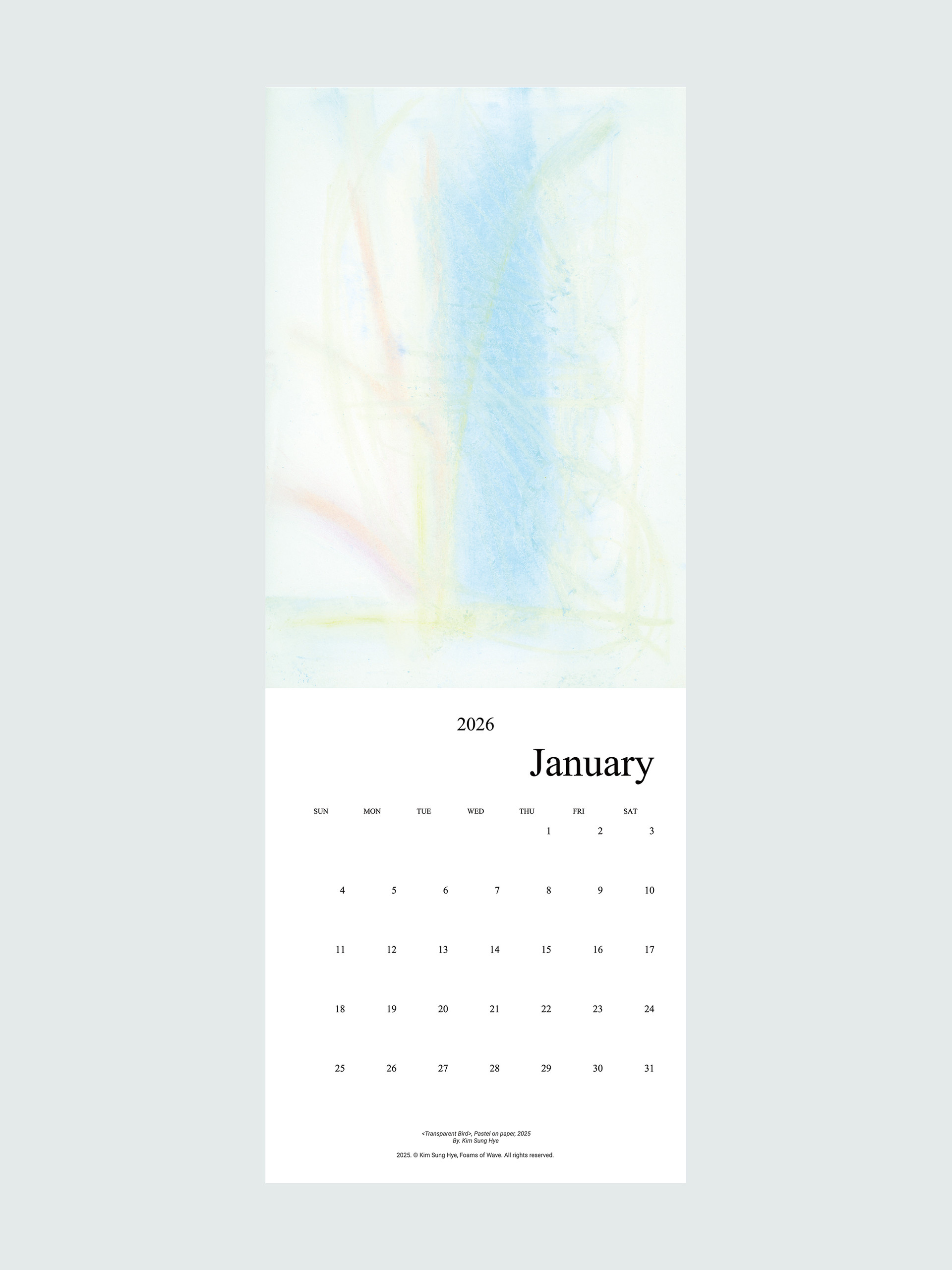 파도의 거품들의 김성혜 작가의 드로잉이 수록된 2026 캘린더입니다. 2025년 한 해 동안 그려진 드로잉으로 구성되어 있습니다. 달 마다 바뀌는 그림을 공간에 걸어두고 바라보며 계절과 시간을 느끼고, 때로는 그림이 건네는 언어로 위안과 힘을 얻으시기를 바랍니다.